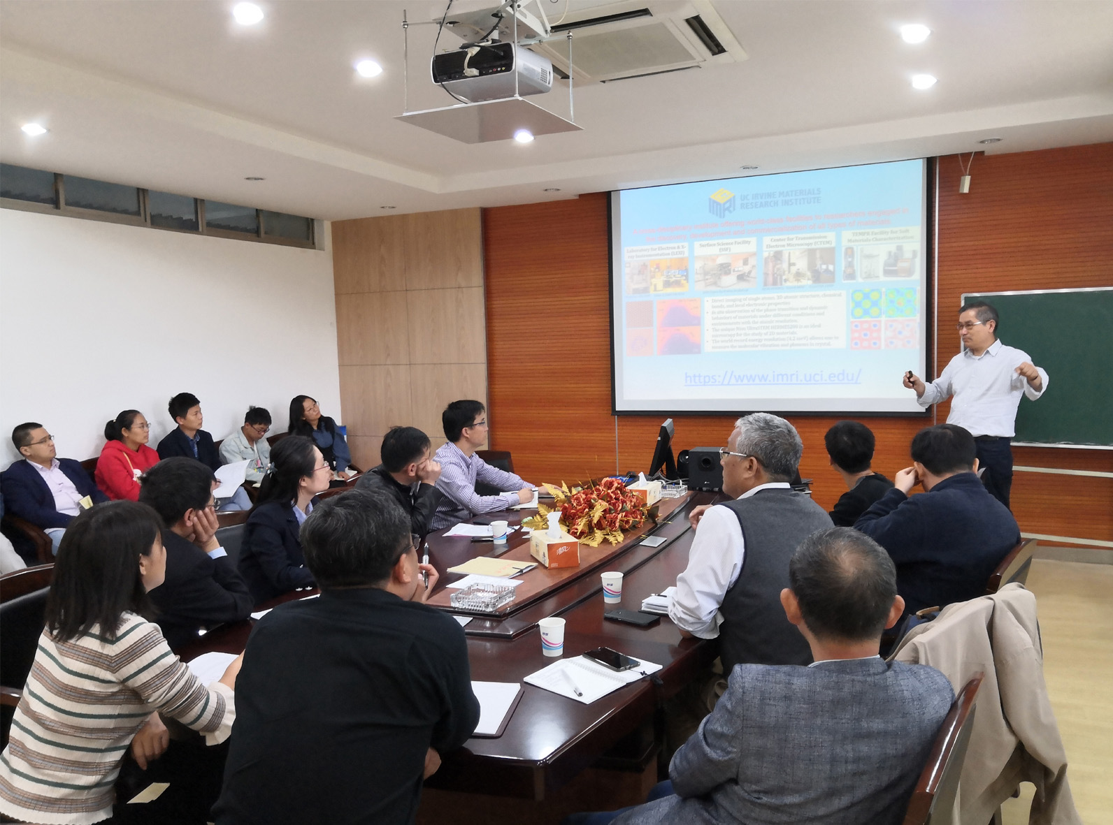 10月21日下午,在北校区知达楼省新型环保重点实验室会议室,美国加州大学欧文材料研究所郑建国教授作题为“球差校正透射电镜技术及应用”学术报告。报告由党委常委、副校长魏少华主持,扬州大学测试中心周卫东教授以及杨秀丽、姜瑞雨、赵云峰等三位建材研究院的副院长出席,建材研究院、材料学院、化工学院等部门的师生聆听了报告。