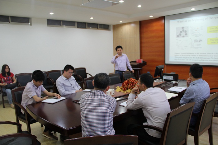 2015年5月21日下午,在东校区知达楼二楼研讨室,材料工程学院许剑光教授走进我室学术沙龙,为我室师生作题为《新型MAX相纳米片的制备、性能及应用》的学术报告。报告会由实验室副主任张勤芳教授主持,相关老师及众多研究生参加了交流会。