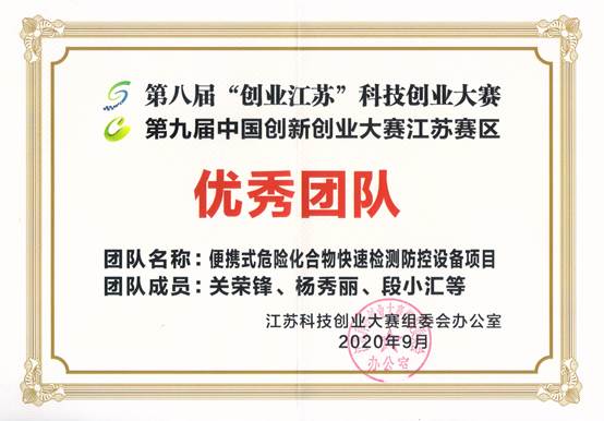 9月10日-11日,第八届“创业江苏”科技创业大赛暨第九届中国创新创业大赛江苏赛区节能环保行业赛在宜兴环科园举行。节能环保行业赛一直是江苏打造科技竞赛的主要赛道之一。由我校省新型环保重点实验室关荣锋教授带队的便携式危险化合物快速检测防控设备项目在比赛中获得优秀团队的好成绩。