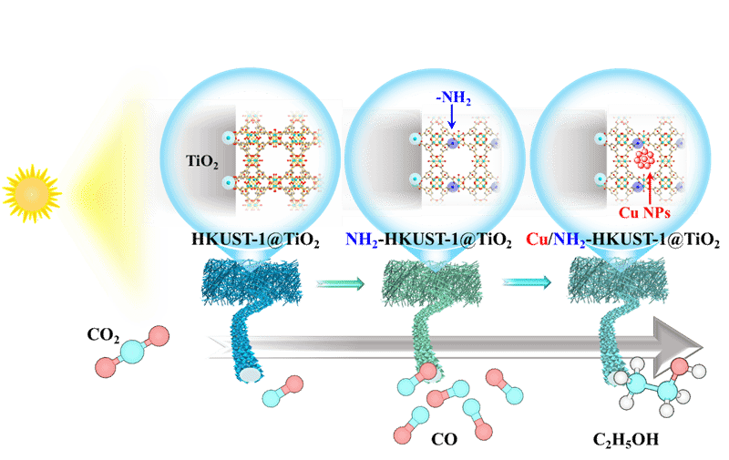 发展CO2的绿色再生新技术是实现双碳目标的重要保障。光催化CO2还原能够利用绿色可再生的太阳能,将CO2转化为CO、C2H5OH等高附加值能源燃料,是解决CO2过量排放污染及全球能源危机的双赢选择。CO2还原可能历经复杂的多电子中间态,其产物种类繁多难以控制,如何调控催化选择性是实现光催化CO2技术应用转化面临的巨大科学挑战。